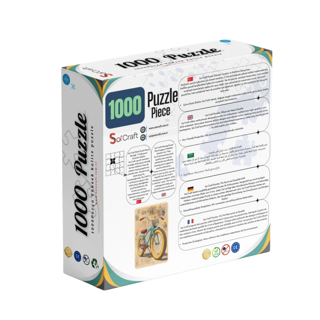 Siz bu 1000 parçalık "Vintage Bisiklet" yapbozunu tamamlarken, sadece bir resmi değil, bir dönemin ruhunu inşa edeceksiniz. Her parça oturduğunda, o klasik tasarımın estetiği ve nostaljinin sıcaklığı Soi Craft kalitesiyle duvarınızda canlanacak.