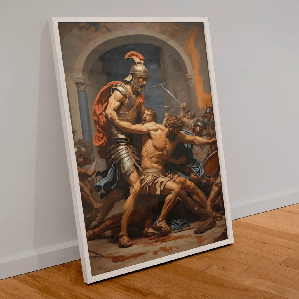 Mücadele bir kıvılcımla başladı. Meşalelerin aydınlattığı koridorlarda, sadece kılıçların çarpışma sesi değil, yüzyılların biriktirdiği bir öfkenin haykırışı yankılanıyordu. Görselde gördüğünüz o an, isyanın en hararetli dakikalarını anlatıyor; gladyatörler sadece Roma askerlerine karşı değil, kendilerine biçilen kölelik kaderine karşı savaşıyorlardı. Spartaküs, arkadaşının omzuna tutunarak onu ileri atarken, Roma’nın yenilmez sanılan lejyonlarına ilk büyük darbeyi vuruyordu.