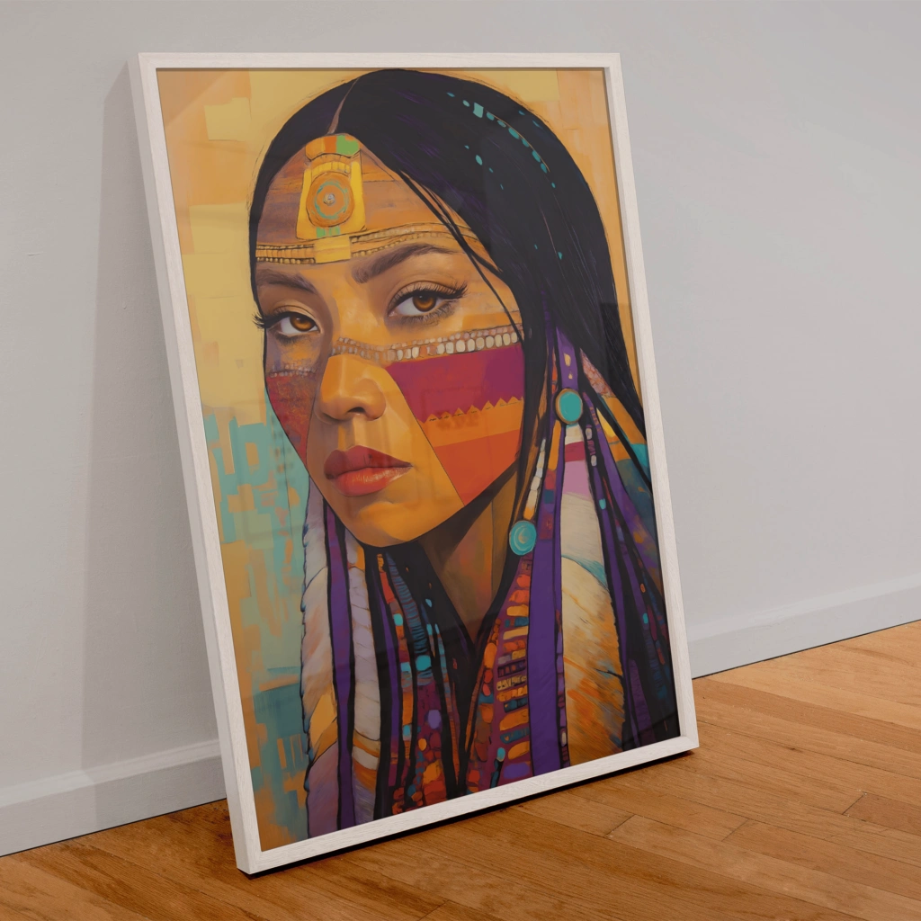 Başına taktığı altın rengi süslemeler ve saçlarına dökülen mor detaylar, onun doğayla olan sarsılmaz bağının bir nişanesiymiş. O, sadece bir birey değil; gökyüzüyle toprağın, geçmişle geleceğin arasındaki köprüymüş. Bir gün bir ressam onun bu vakur duruşunu tuvale aktarmaya karar vermiş. Demiş ki: "Bu bakışlardaki derinlik, binlerce parçaya bölünse bile her bir parçasında bir dünya saklıdır."