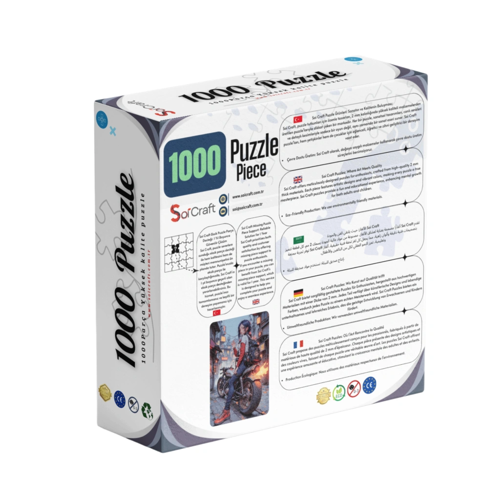 Senin de içinde böyle bir asi ruh yok mu? Soi Craft’ın bu özel "1980 Japonya Motorlu Kız" puzzle’ını bitirdiğinde, kendi hikayeni de yazmaya başlayabilirsin. Parçaları birleştir, zihnini dinlendir ve bu nostaljik, siberpunk dünyanın bir parçası ol!