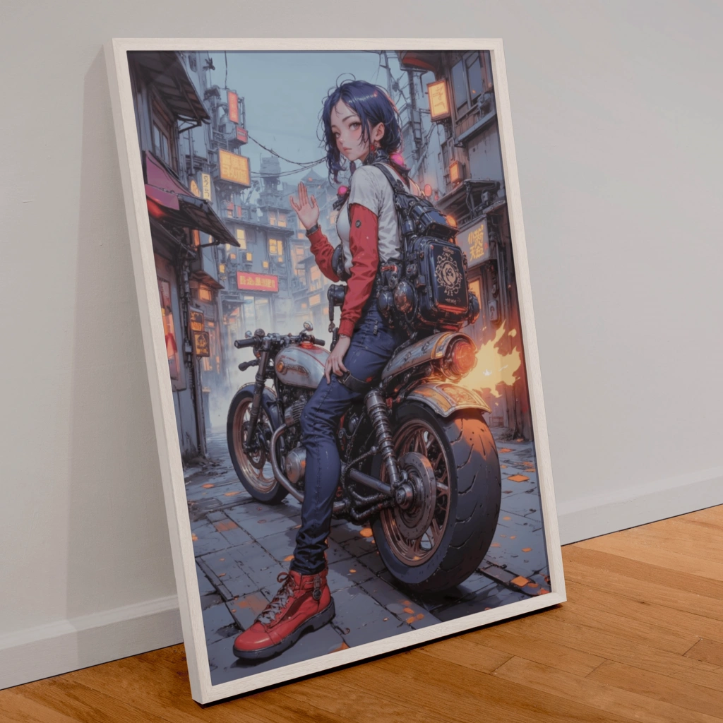 Motorun rölanti sesi arttıkça, sokak lambaları daha parlak yanmaya başladı. Kız, motorun gazına hafifçe dokundu. Neon ışıkları, motorun metal yüzeyinde parlıyor, bir serap gibi şekilleniyordu. O an anladın ki, bu kız, sadece Japonya’nın 80’lerini değil, senin de içindeki o asi, özgür ve keşfetmeye aç ruhu temsil ediyordu.